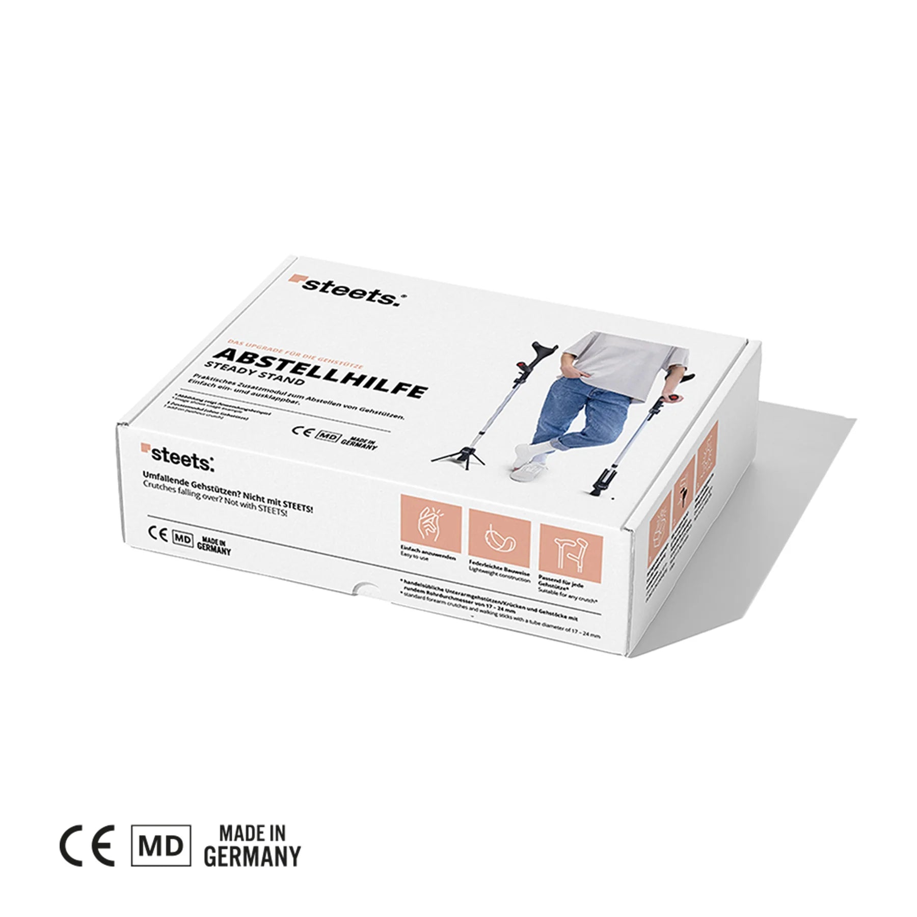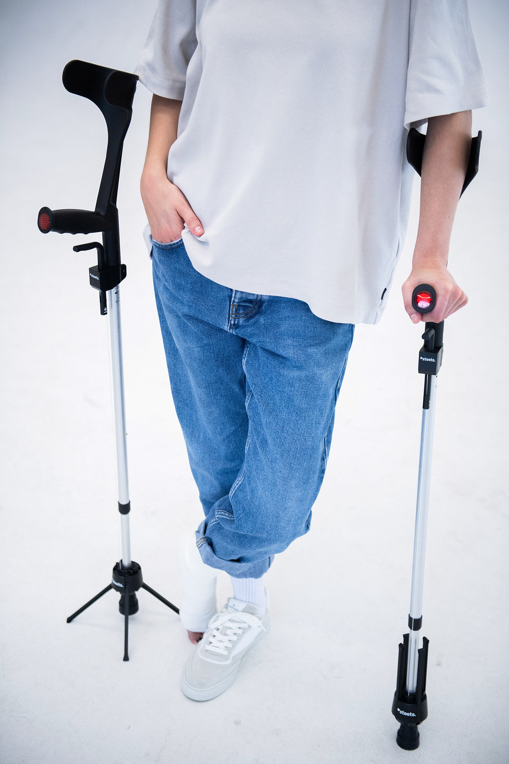 Die STEETS Abstellhilfe macht den Alltag mit Gehstützen spürbar leichter.